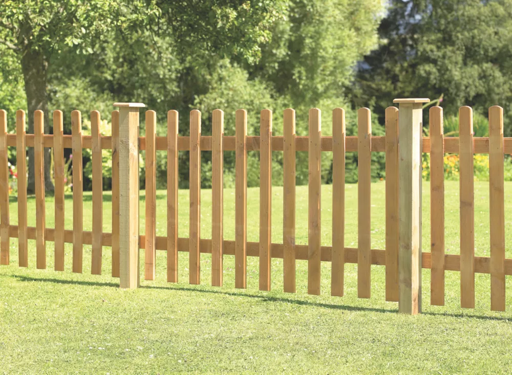 Softwood. Traditional, ready-made palisade fence panels with 2 horizontal battens for increased strength.