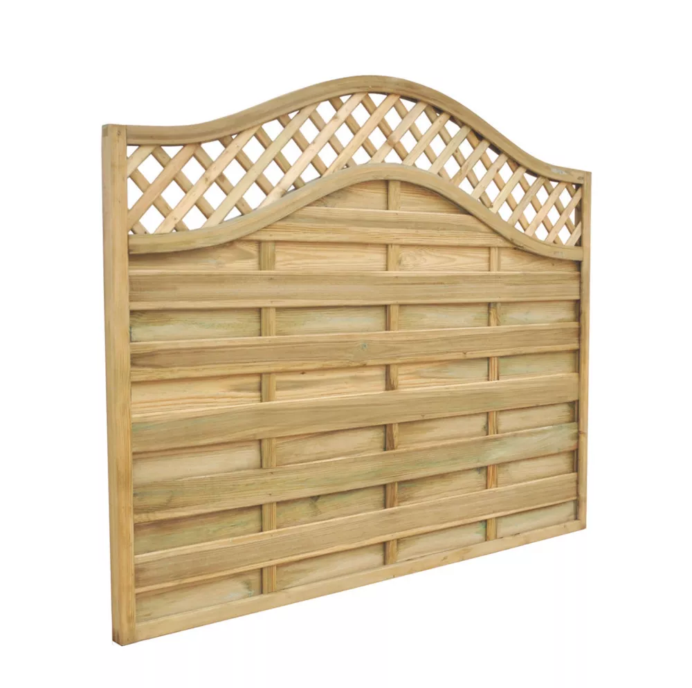 Softwood. Stylish and decorative fence panels with a curved trellis design.