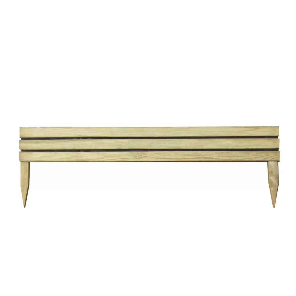 Modern alternative to the more conventional and traditional log and picket edging. Pressure-treated to protect against rot. Simple clean lines give a contemporary effect for edging borders or defining front garden boundaries and driveways. Comes complete with integral spikes for sinking into soft ground and also a pre-fitted black liner which helps define the slatted effect. The slats are 15cm high and with the spikes this makes a total height of 34cm.