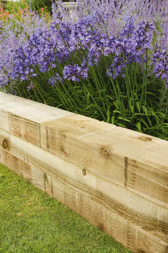 Traditional, chunky landscaping sleepers manufactured from rough-sawn timber. Ideal for edging, retaining walls, raised beds and steps.