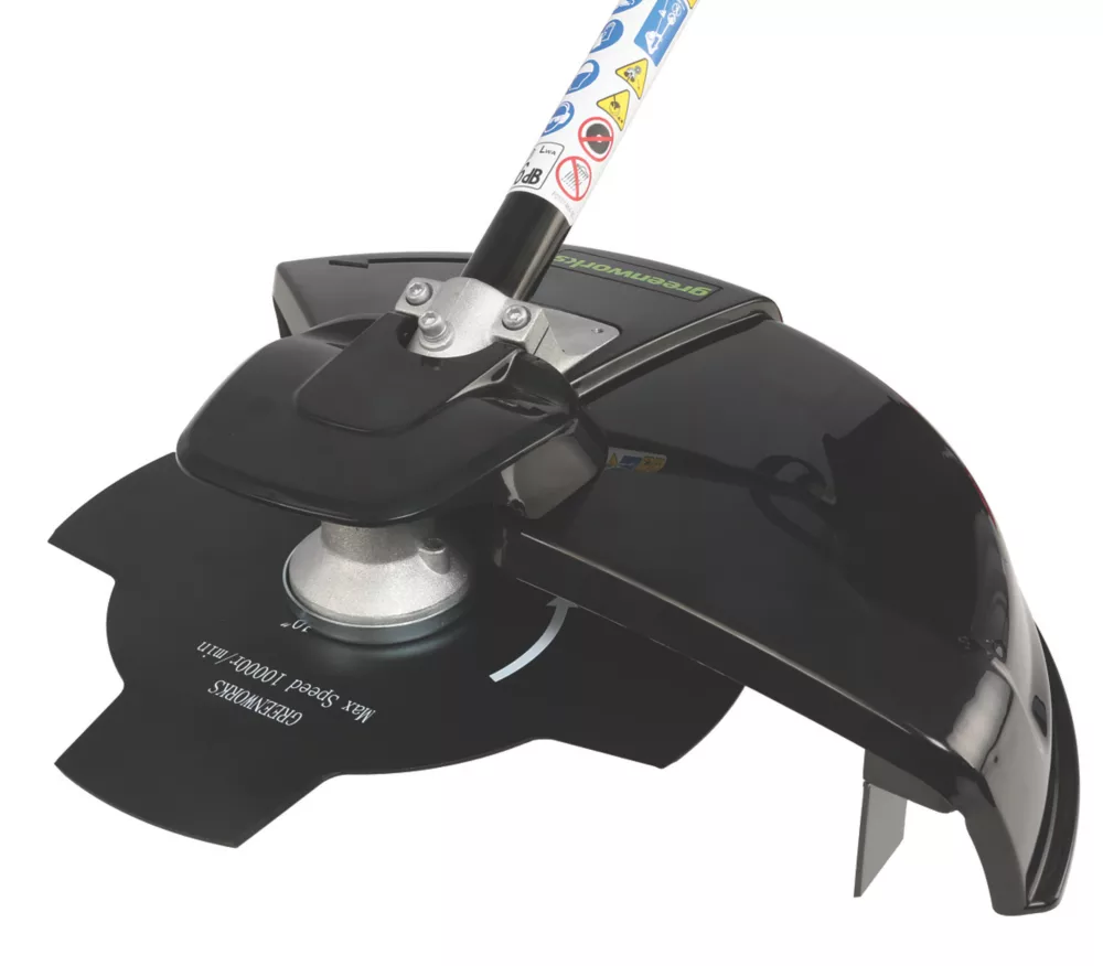 Ideal for domestic use. Easier to use than an electric trimmer and as powerful as a petrol one. Fit either a line trimming head for cutting long grass or a blade for weeds and heavy growth. Can cut the most dense grass.. Features fast cutting, low noise and almost zero maintenance. Accepts attachments from multiple brands. Dual bump feed head with 2mm line. Supplied with metal brush cutter blade.