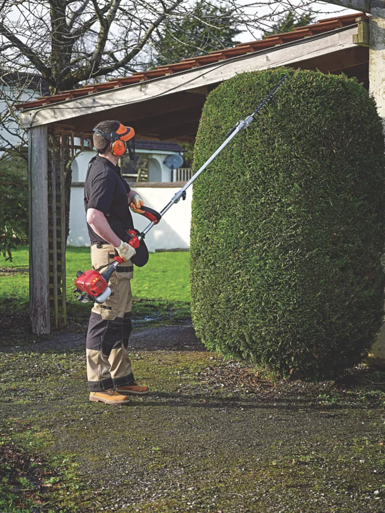 Versatile petrol multi-tool with attachments for grass trimming, brushcutting, hedge cutting and pruning. Includes 70cm extension pole, providing extra reach for low hanging branches and tall hedges. Straight and jointed shaft. Supplied with a maintenance tool kit.