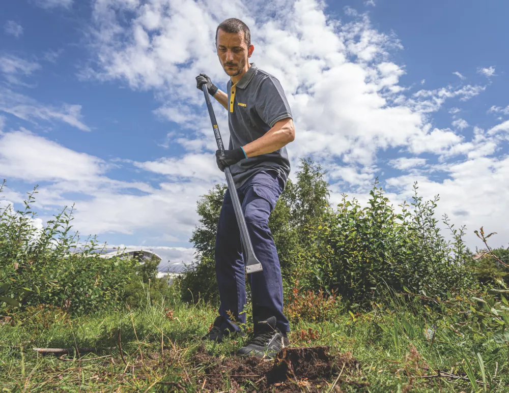 Hand-forged, heat treated and hardened, heavy-duty digging bar. Featuring a point tip for breaking up hard ground and concrete and a chisel end for levering heavy objects such as boulders, paving slabs and broken concrete. Powder-coated with polished tips for greater corrosion resistance.