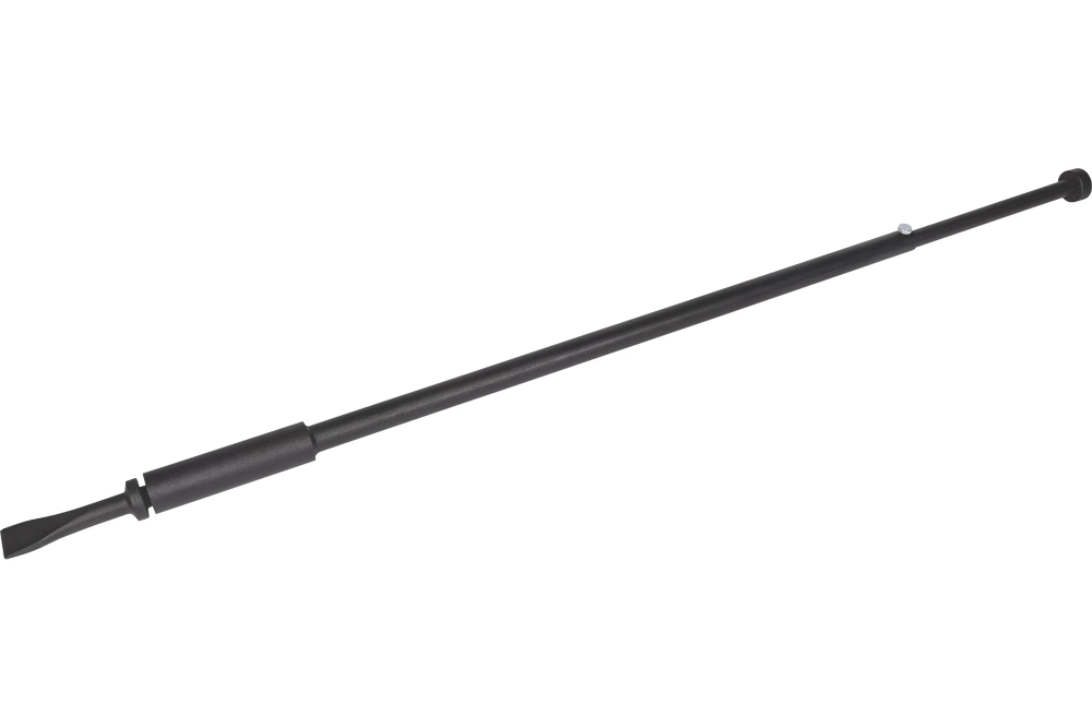 Heavy duty bar with chisel tip, drop-forged, heat-treated and hardened. Weight slides up and down the central bar to exert force on the target area. For extra impact the end stopper can be removed to allow the weight to drop from greater height. Suitable for breaking up hard ground, rocks, concrete slabs, asphalt and more. Ideal for use in locations where a normal crowbar is not sufficient and a pick is not accurate enough.