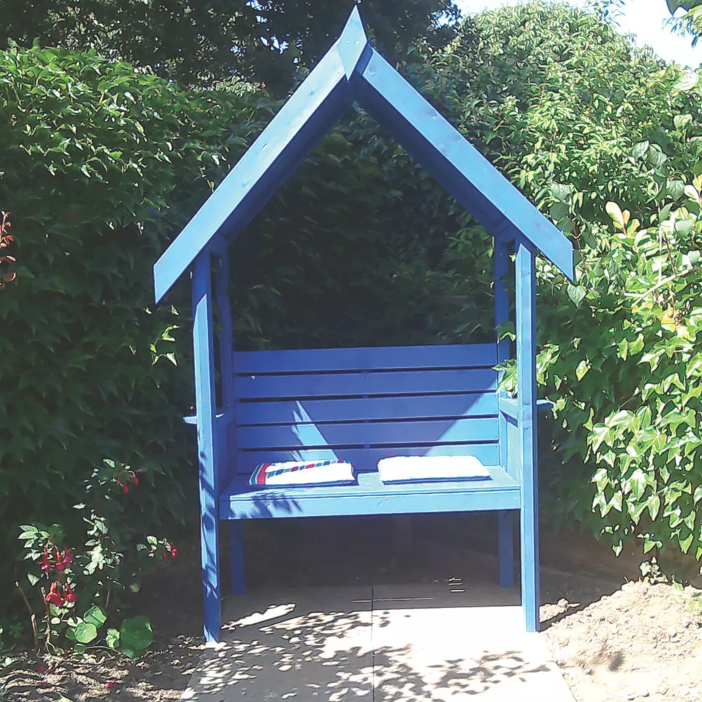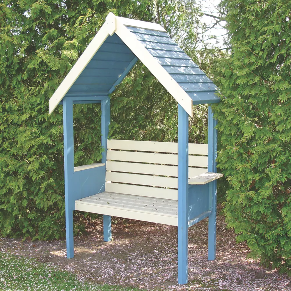 Stylish arbour with pressure-treated timber. Seats up to 2 adults. Easy to assemble.