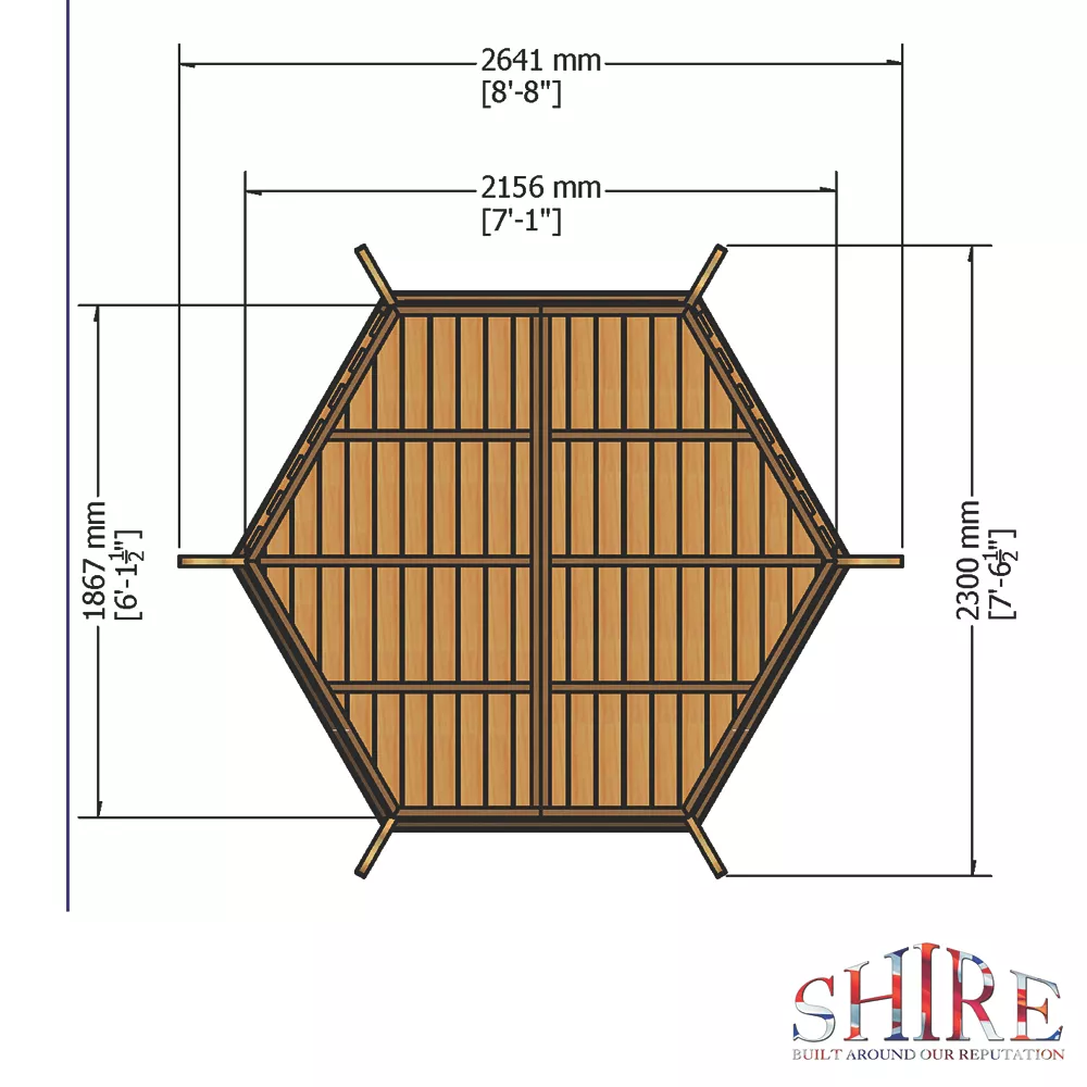 Arbour with tongue and groove profiled roof and pressure-treated timber. Supplied with shaped roof supports and floor. All necessary hardware included for easy to follow self-assembly.