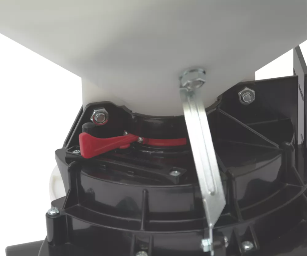 Integral agitator ensures even distribution onto the steadily rotating spreader disc, driven by the manual crank. Granulated matter can be applied where specifically required, even on difficult terrain. Adjustable direction and delivery rate. Large filling aperture and screw-top for protection from harmful dust. Ideal for seeds, fertiliser (e.g. after scarifying), gritting salt, oil absorbers, cleaning agents, pelletised lime, bird seed, stock feed and sand.