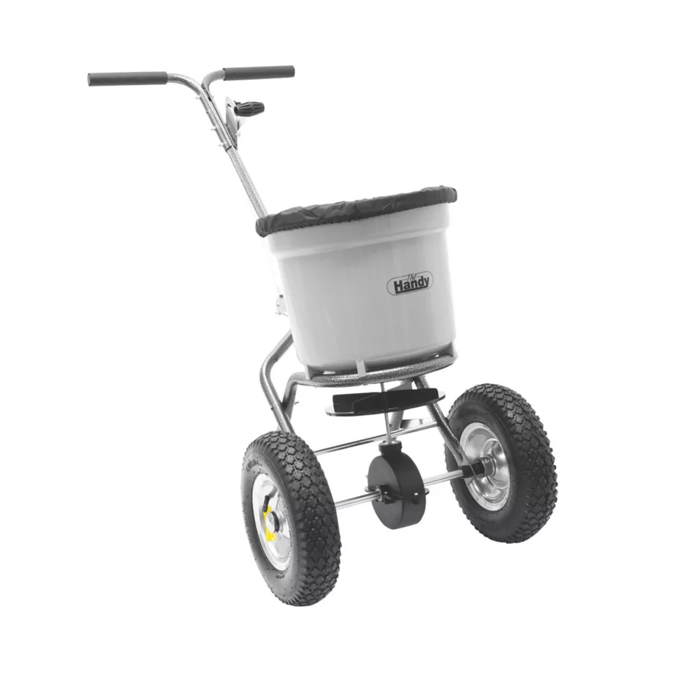Rugged and durable. Rotary agitator delivers material efficiently and ensures consistent application. For use with fertilizer, granules, grass seed and other garden distribution.