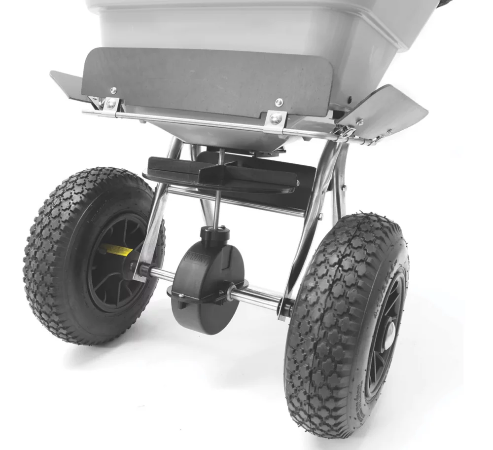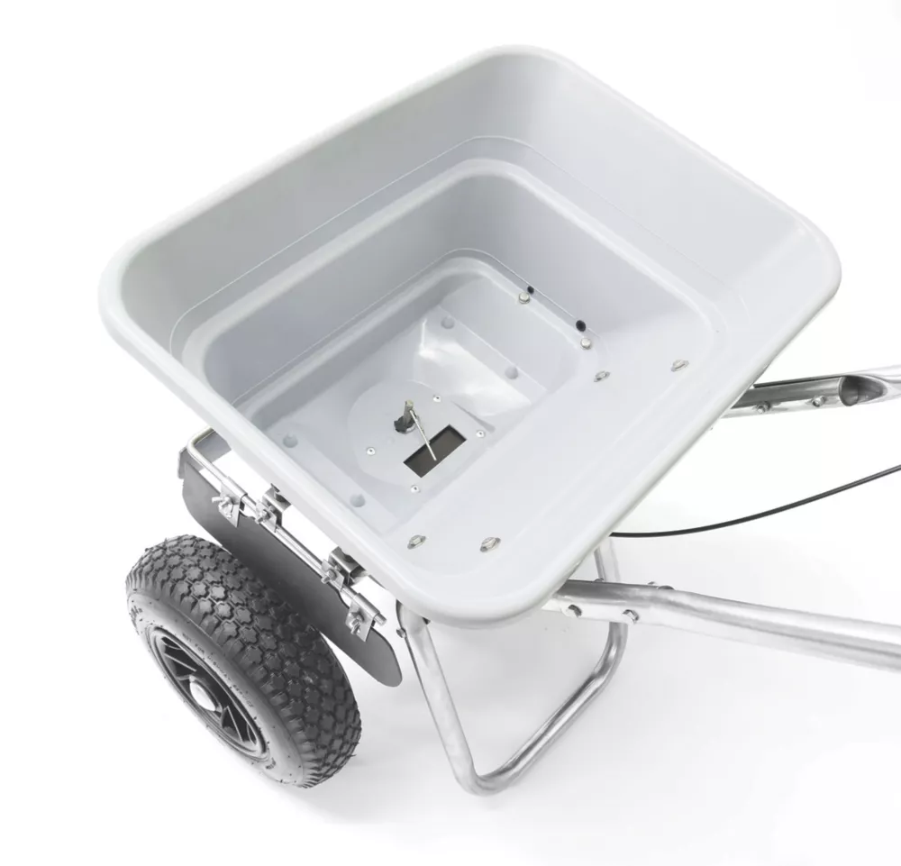 Can be used for ice-melts, processed salt and for distributing fertiliser. Includes a hopper screen that prevents clogging and a rain cover for operation in all weather conditions.