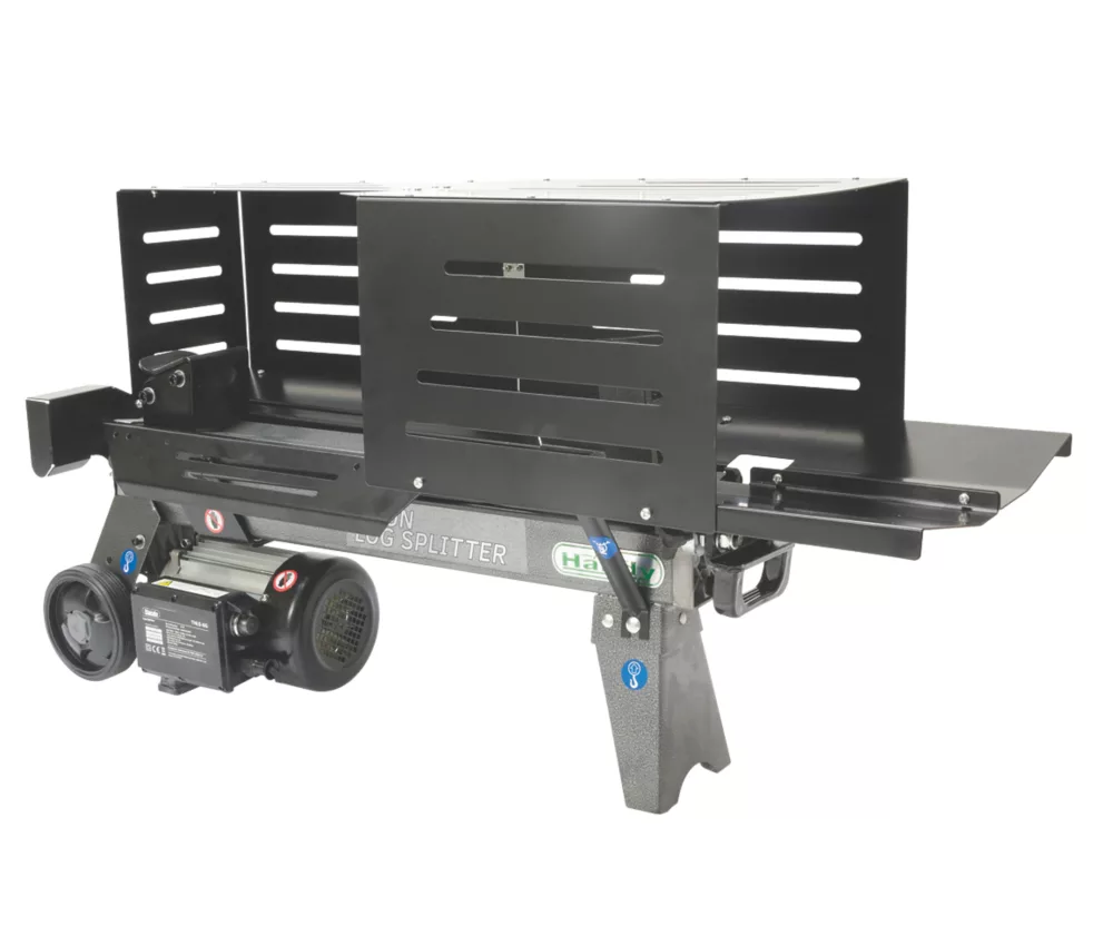 Compact enough to be stored easily in either a shed or garage. Designed and manufactured to quickly and easily split logs. Capable of splitting logs with the minimum of effort being required by the user. Logs can be split safely due to the 2-handed operation. Mounted on wheels and features a pull-handle, enabling easy transportation.