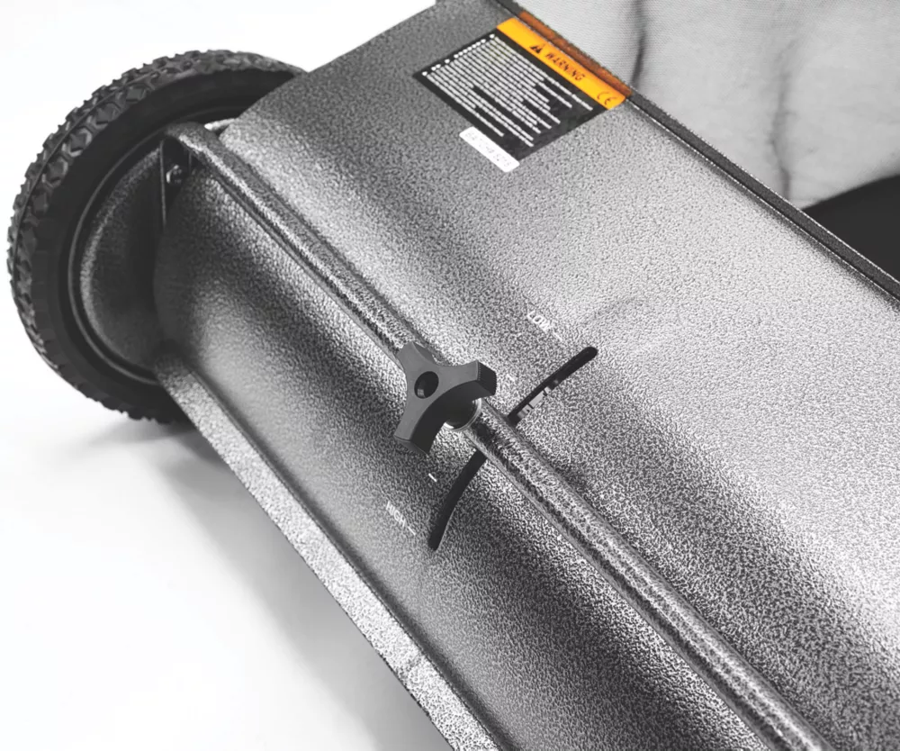 Practical and convenient push-type sweeper combining a substantial 66cm working width with a huge 200Ltr collector for extended periods of operation. Features height adjustment for multi-surface use and large 25cm diameter wheels for no-slip traction, even on hard ground. Its durable sweeper brush is powered by the action of the wheels on the ground, rotating 4½ times for every turn of the wheels, resulting in a thorough pick-up and a neat, debris-free lawn. Can be set-up to perform successfully on a variety of surfaces, including grass, tarmac, concrete and gravel.