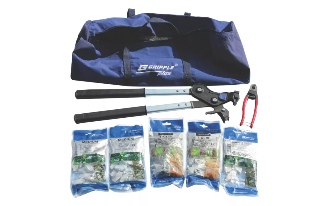 Handy kit containing everything required to repair a wire fence. Supplied in a heavy duty canvas bag.