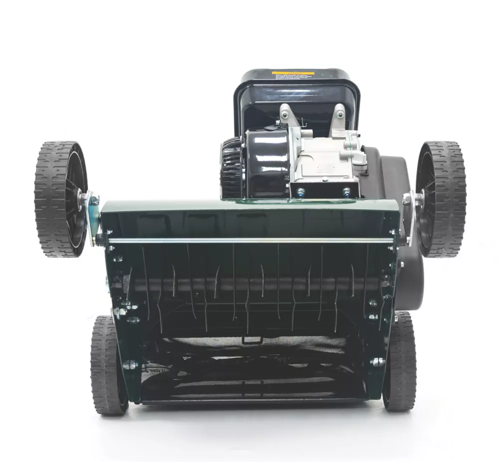 Powerful, fast and convenient, offering a sizeable 40cm working width with 45Ltr collector. Offers choice of 18-steel-bladed scarifier or 28-spring claw cassette for removing moss, thatch and dead grass. Soil penetration allows moisture and nutrients to be easily absorbed and lawn to breathe again. Features large wheels for easy pushing, adjustable working height and space-saving foldable handlebars. Ideal for medium-sized lawns.